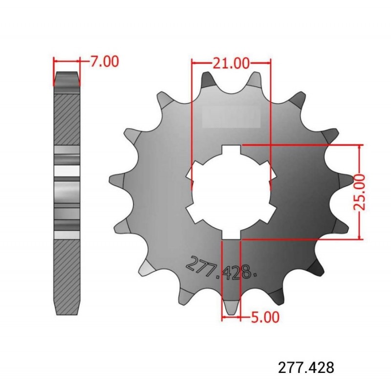 Piñon de salida para Bultaco, con eje pequeño, con diametro mayor de 25 y menor de 22 mm. Con paso de cadena 428. Numero de dientes a elegir.