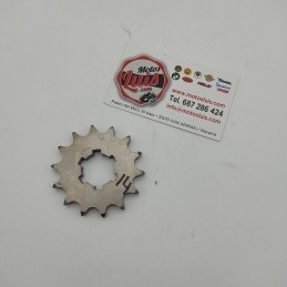 Piñon para Derbi varios modelos. Con paso de Cadena 415 y numero de dientes a seleccionar. Diametro interior minimo de 13 mm. y maximo de 16 mm. con 6 estrias de ancho 3.75 mm.