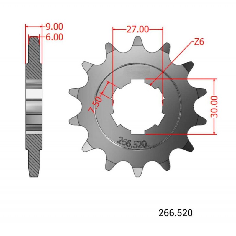 Piñon para Montesa Cota 314R y 315R. Con paso de Cadena 520 y numero de dientes a seleccionar. Diametro interior de 18-20 mm.Numero de dientes a elegir