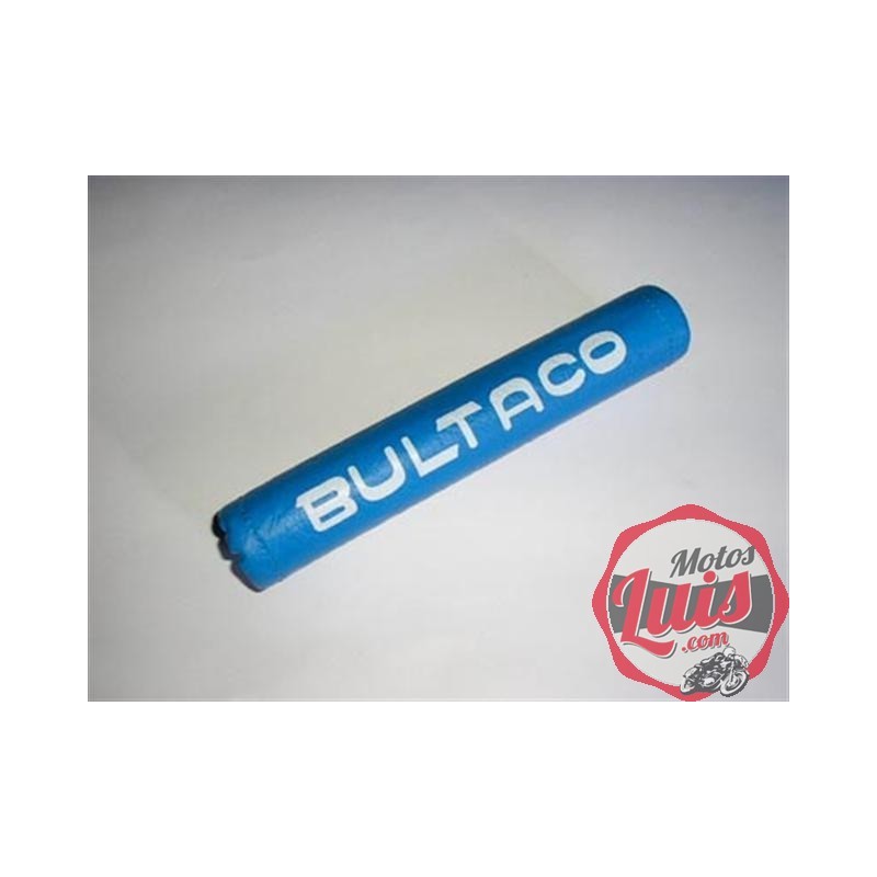 Protector de manillar tipo corto para modelos Bultaco de trial, con piel azul y anagrama en blanco, apto para manillares modernos de trial.