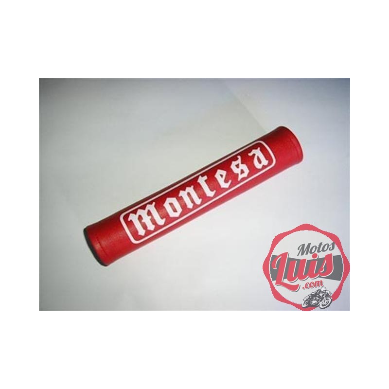 Protector de manillar para con el anagrama de montesa, de color rojo con letras goticas blancas e