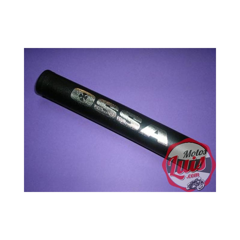 Protector de manillar de OSSA en color negro, con letras en plata, de calidad superior, con cordo