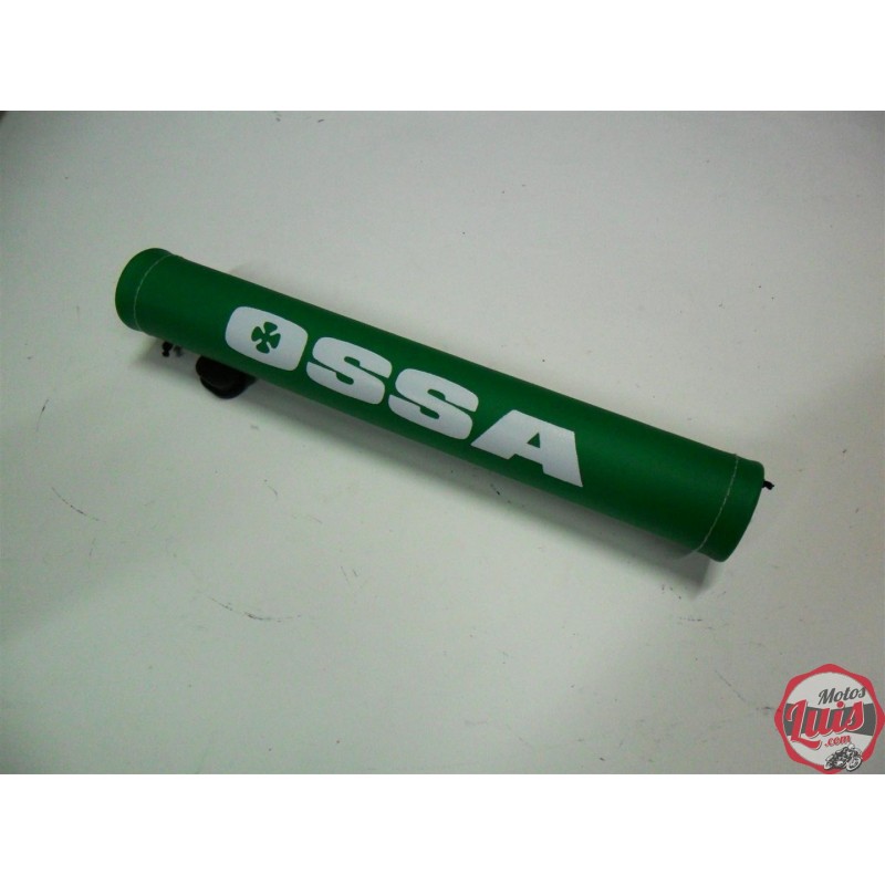 Protector de manillar tipo corto para modelos Ossa de trial, con piel negra y anagrama en amarill