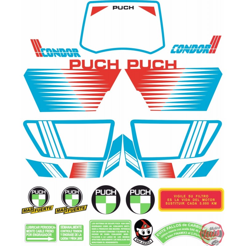 Kit de adhesivos motos clasicas para PUCH CONDOR MD. Juego Pegatinas Completo - Vinilo para Moto, máxima Calidad.