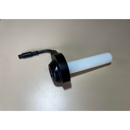 Puño de gas con salida lateral universal realizado en plastico. Utilizado habitualmente en ciclomotores de los años 80 o 90.