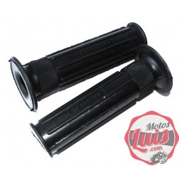 Juego de puños con Logotipo (M) para Montesa Brio en color NEGRO. Con diametro 22 para el lado izquierdo y 24 para el puño de gas.