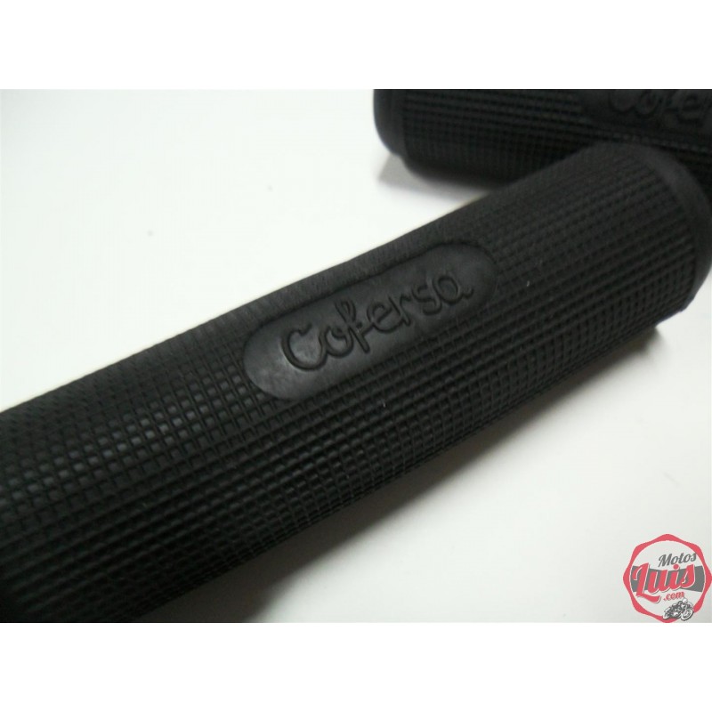Juego de puños con Logotipo de Derbi con las letras clasicas. Con diametro 22 mm. para el lado izquierdo y 24 mm. para el puño de gas.