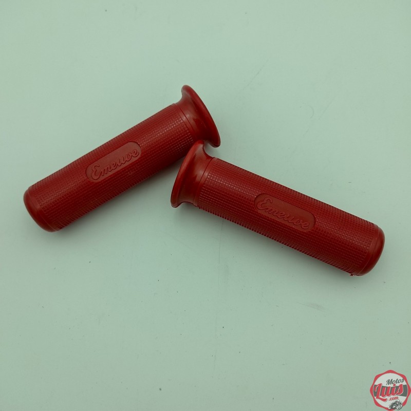 Juego de puños en color rojo. Con los diametros estandar, 22 para el lado izquierdo del manillar