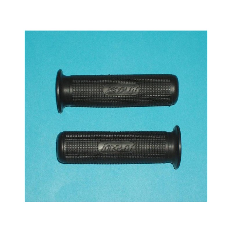Juego de puños IDEAL con forma PENTAGONAL, montados de serie en modelos como OSSA Yankee, Derbi TT8 y otras. Con diametro 22 mm. para el lado izquierdo y 24 mm. para el puño de gas. El precio indicado es por la pareja de ambos puños
