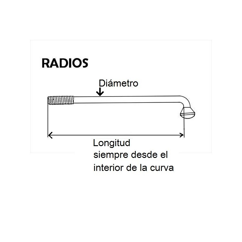 Radio suelto de 170 milimetros x 3.5 milimetros de grosor, con la cabecilla a 90 grados