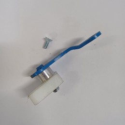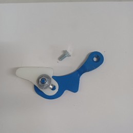 Patin de cadena primaria para Bultaco Sherpa y similares, motores que no tienen tornillo de fijacion por la parte inferior y cuya tapa de embrague es ovalada. Se instala en lugar del tensor habitual con muelle y se ajusta la tension de forma que la cadena no quede demasiado tensada ni cuelgue, evita ruidos por vibracion de la cadena.
