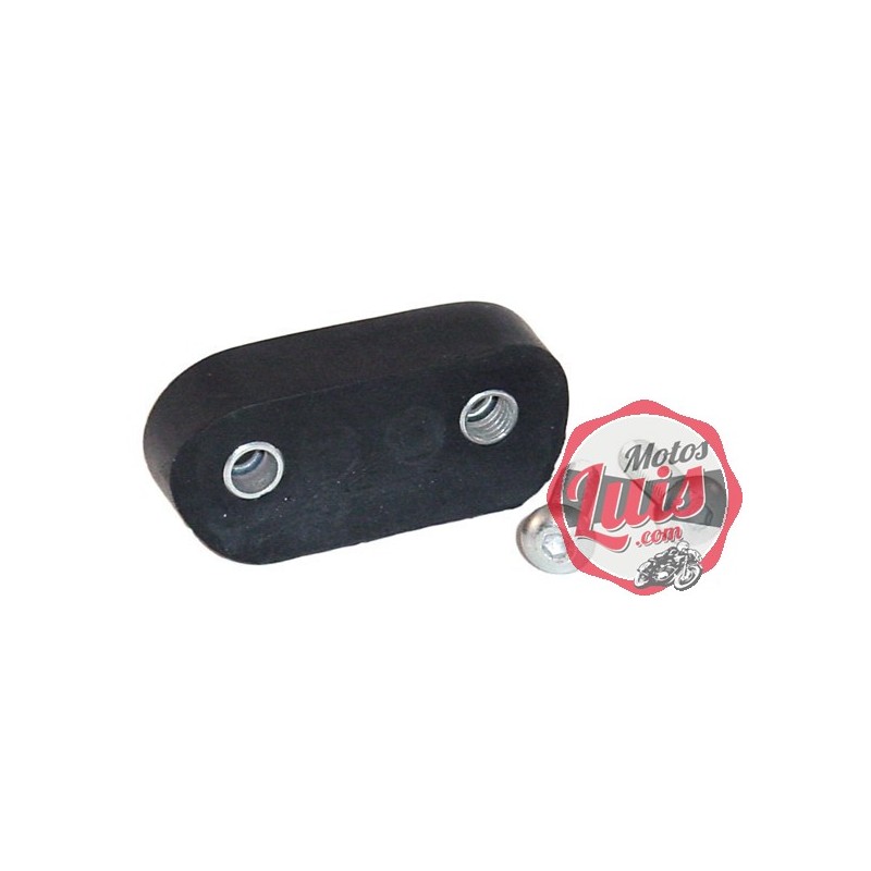 Silentblock de escape universal, valido para motos de enduro, se trata de un silentblock recto aunque debido a su eslasticidad permite ser montado en angulos como por ejemplo en motos como la montesa enduro H6 y H7 Distancia entre centros de agujeros: 54 mmEspesor total chapa-goma-chapa: 19 mm Nuevo. Precio por unidad